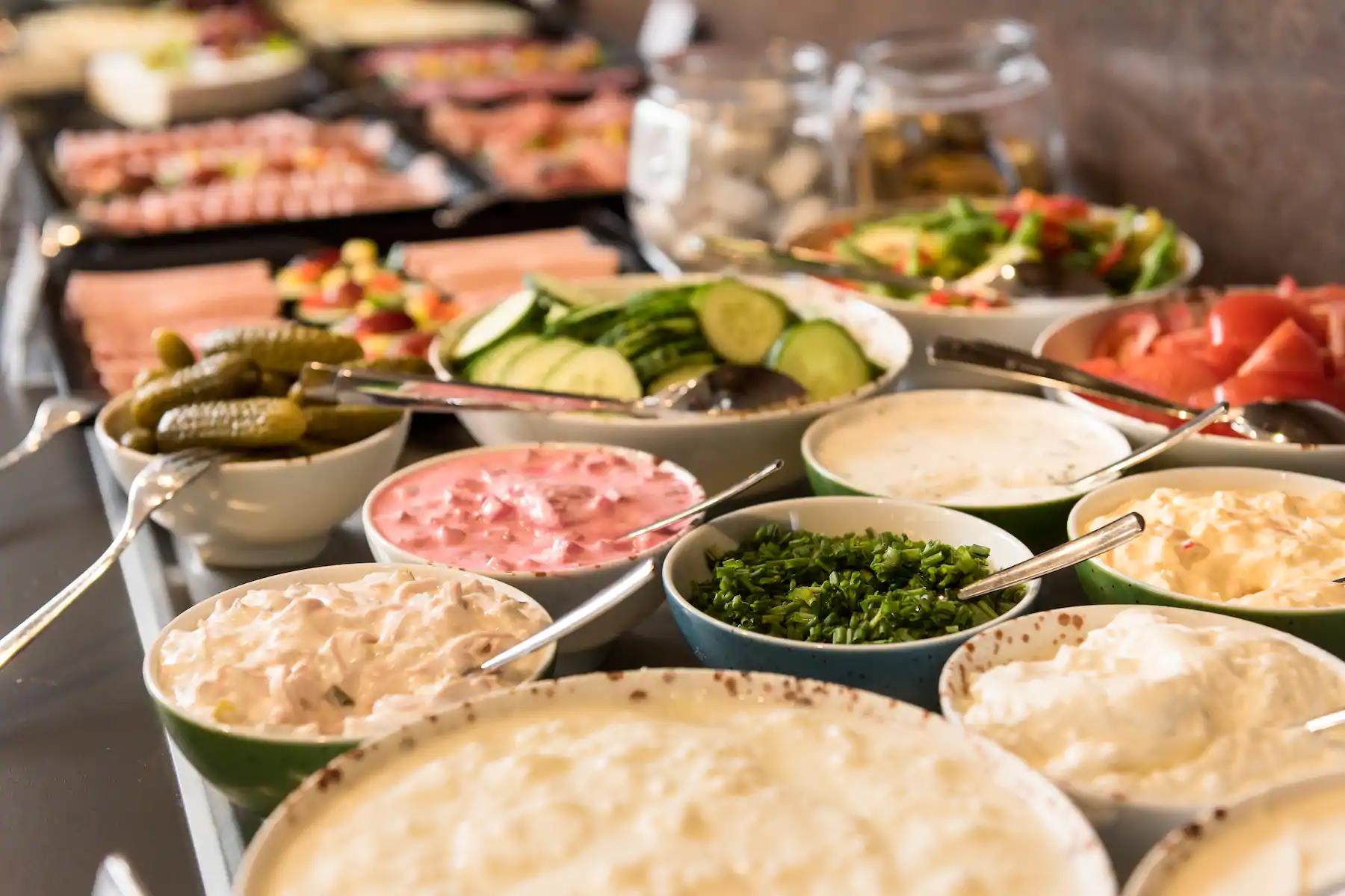 Fra hotellets restaurant er der en fantastisk udsigt over Flensborg havn. Her kan I starte dagen med en lækker morgenbuffet.