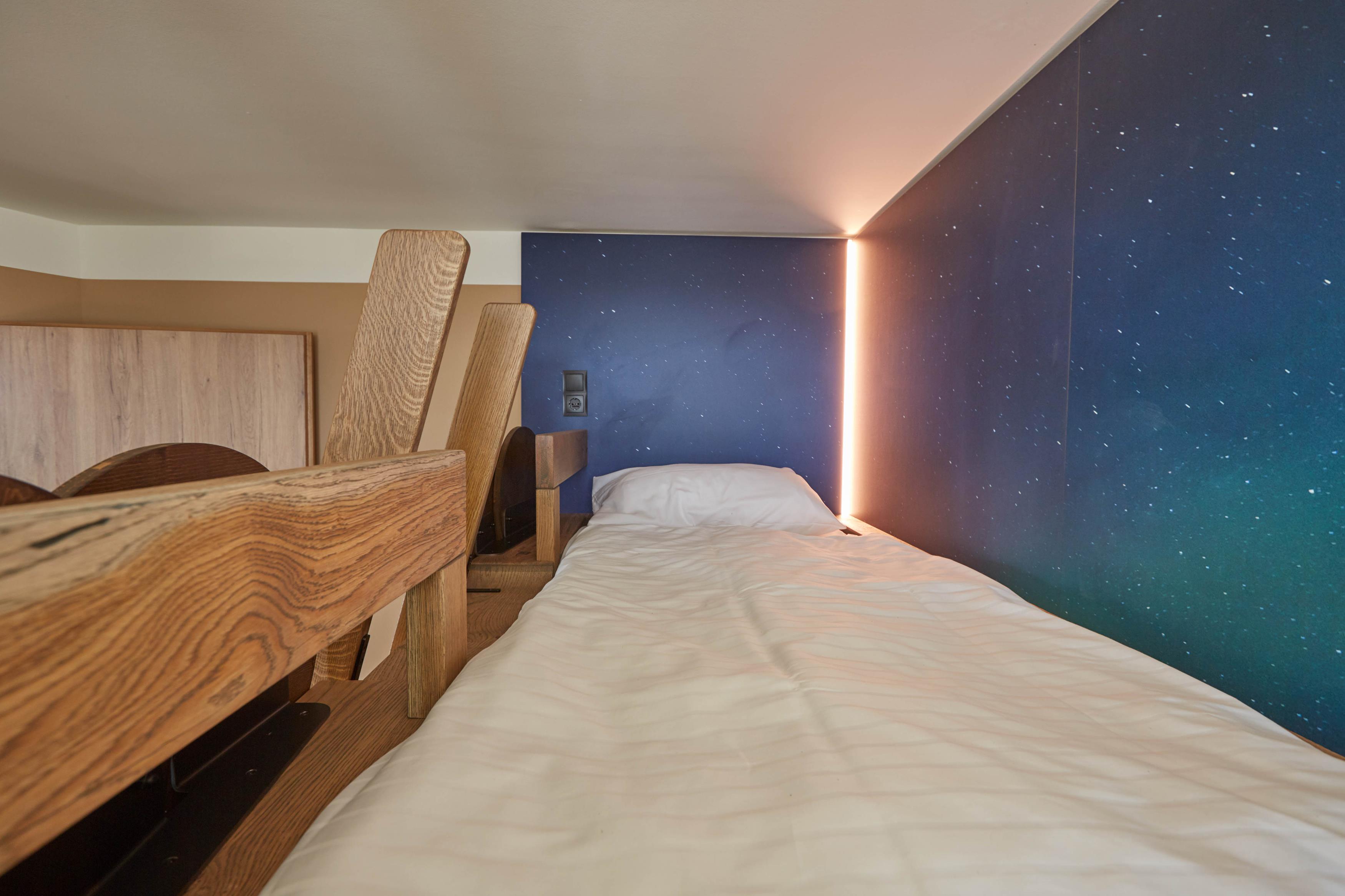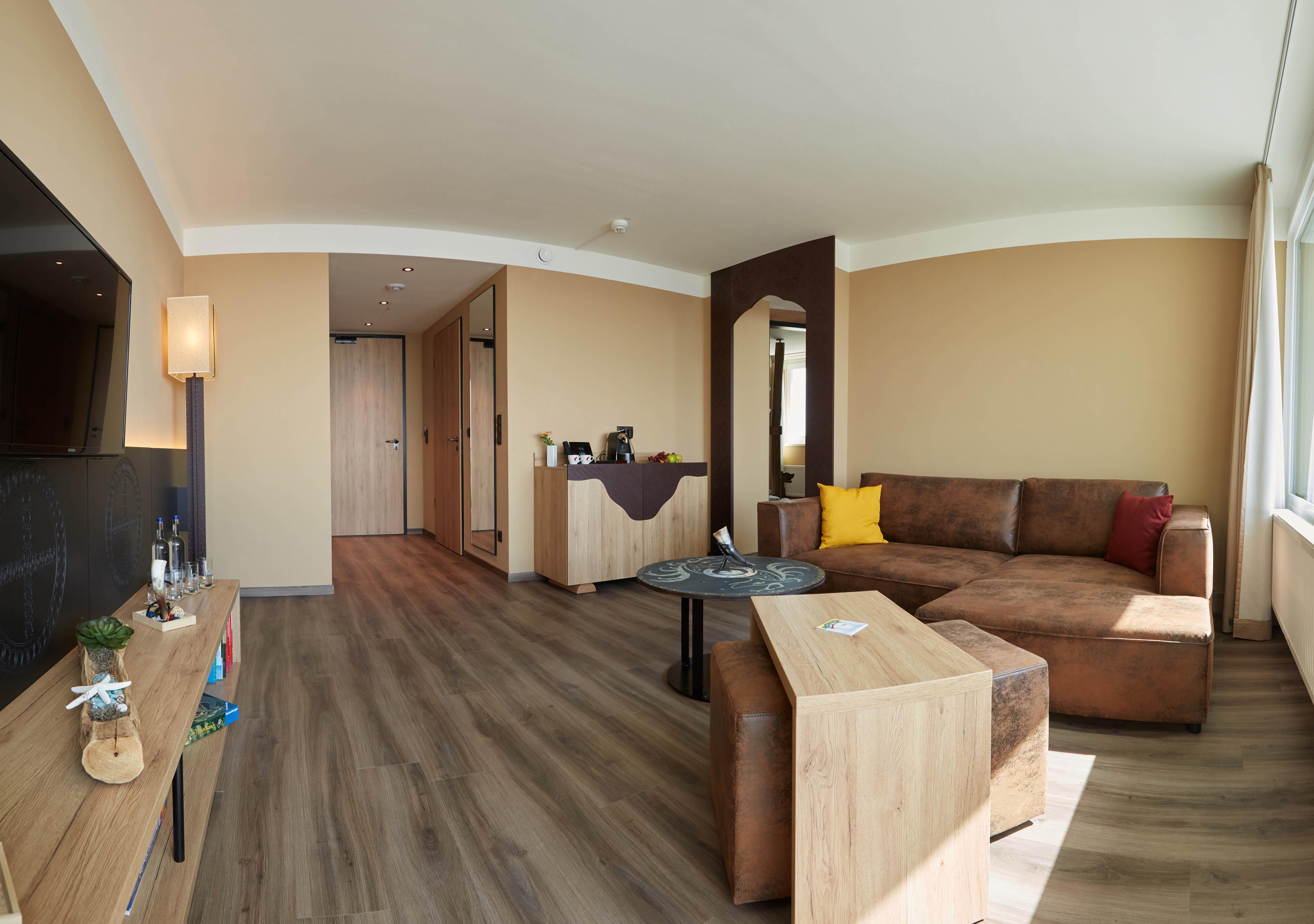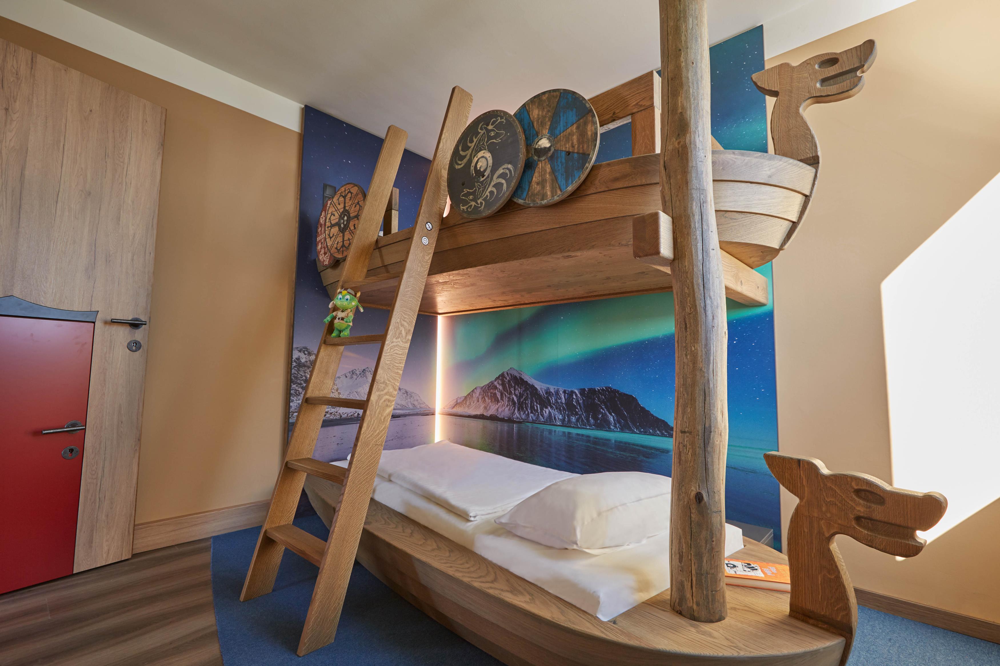 Allerede i hotellobbyen begynder vikingeeventyret! På hver etage såvel som på værelserne følger man vikingerne på deres rejser. Landkort, vægmalerier, stjernebilleder og speciallavede tæpper tager nysgerrige gæster længere og længere væk på vikingernes rejser over de store have. Alle værelser har eget bad og toilet, hårtørrer og TV samt en møbleret balkon.