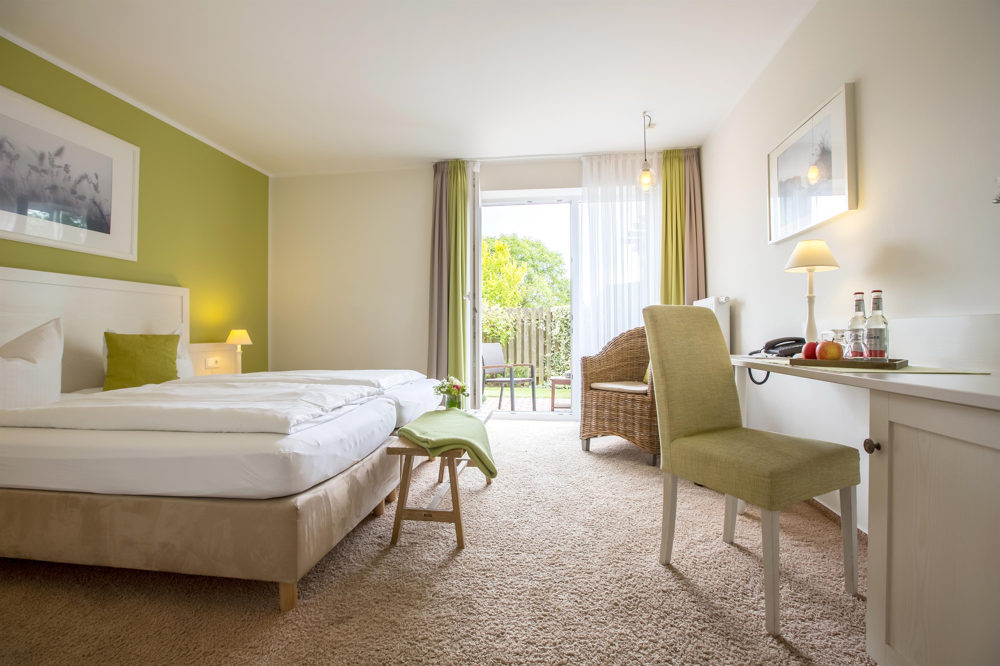De lyse værelser er hyggeligt indrettet med dobbeltseng, skrivebord og lænestol. Værelserne er på 23m² og har bl.a. radio, fladskærms-TV med satellit og gratis internet samt et badeværelse med toilet, bruser, stort spejl og føntørre. De fleste værelser har udsigt over det flade marskland med sortbrogede køer og hårdføre marskfår.