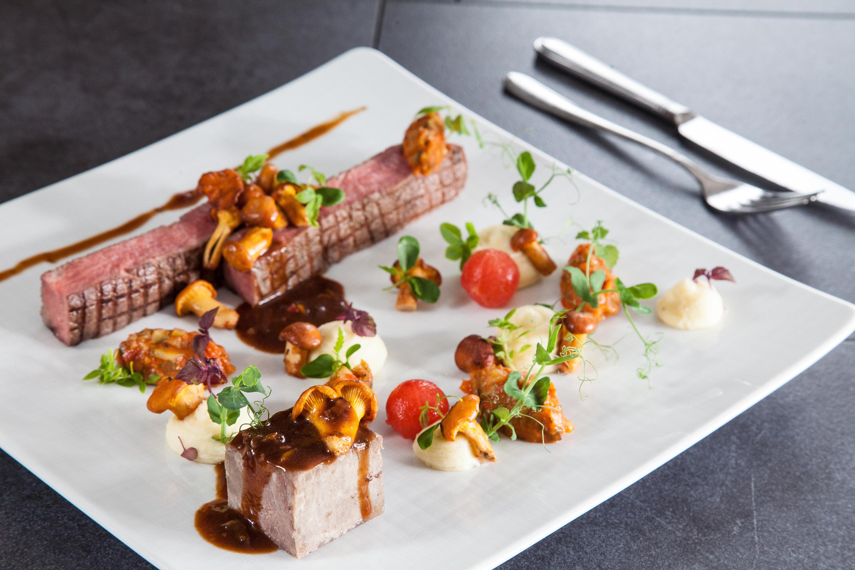 Hotellets restaurant ”Ursprung” indbyder til mange dejlige timer med kulinariske delikatesser i hyggelige omgivelser med venlig betjening. Her lægges vægt på gode råvarer og regionale produkter. Anretningerne, der er skabt af friske og primært regionale produkter, er både en fryd for øjet såvel som for smagsløgene! Det veluddannede personale står gerne til rådgivning med vinforslag, så alt går op i en højere enhed. På hotellets hyggelige terrasse direkte ved kanalen kan I forkæle jer med diverse drikkevarer samt søde fristelser fra husets konditori, mens I nyder den smukke og beroligende udsigt over kanalen.