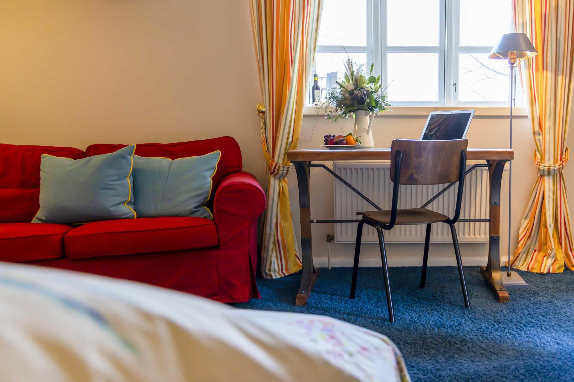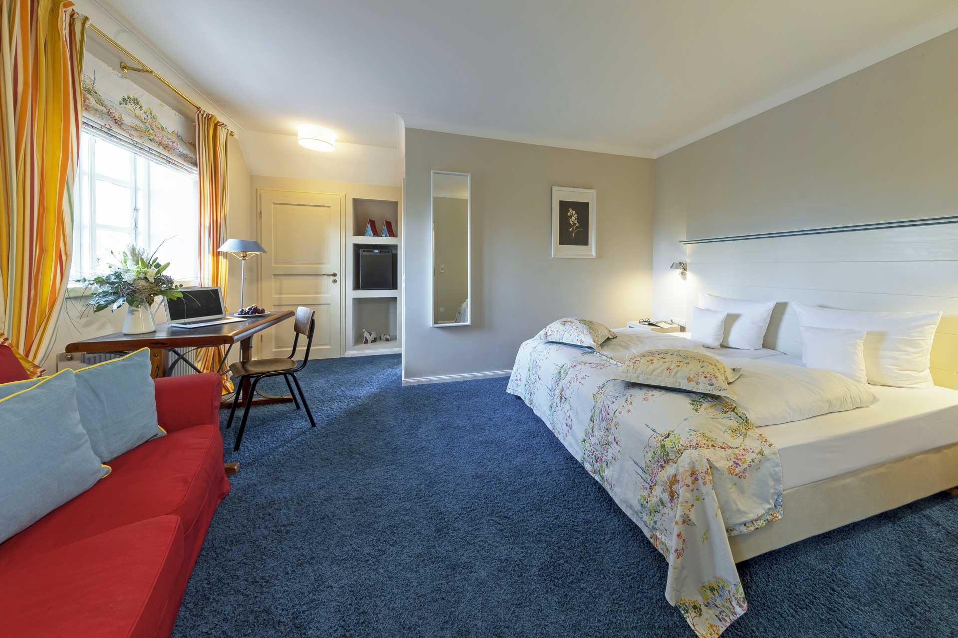 De hyggelige komfortværelser er indrettet med varme og charme. De er alle udstyret med en komfortabel seng, badeværelse, sofa, skrivebord + stol, TV, WiFi og minibar. Her kan I glæde jer til at slå benene op og slappe af efter en dag med oplevelser i Lübeck.