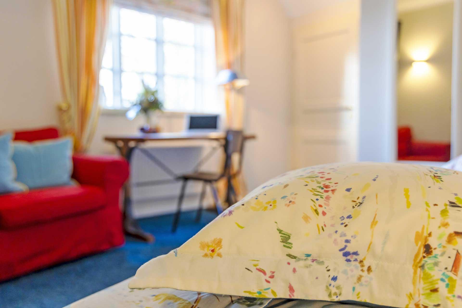 Hotellet, der er en tidligere landejendom, har med renoveringen i 2022 formået at bevare sin oprindelige charme med bl.a. den velplejede gårdsplads og den idylliske have med store gamle træer og hyggelige oaser. Her kan I slappe helt af og nyde fridagene fuldt ud.